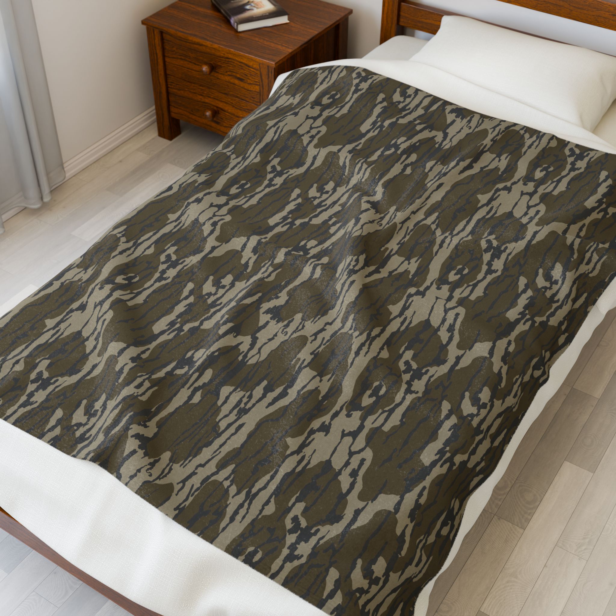 Velveteen Camo Plush Blanket, Soft Camo Throw for Fans, Bottomland, Home Decor, Snuggling, Gifts