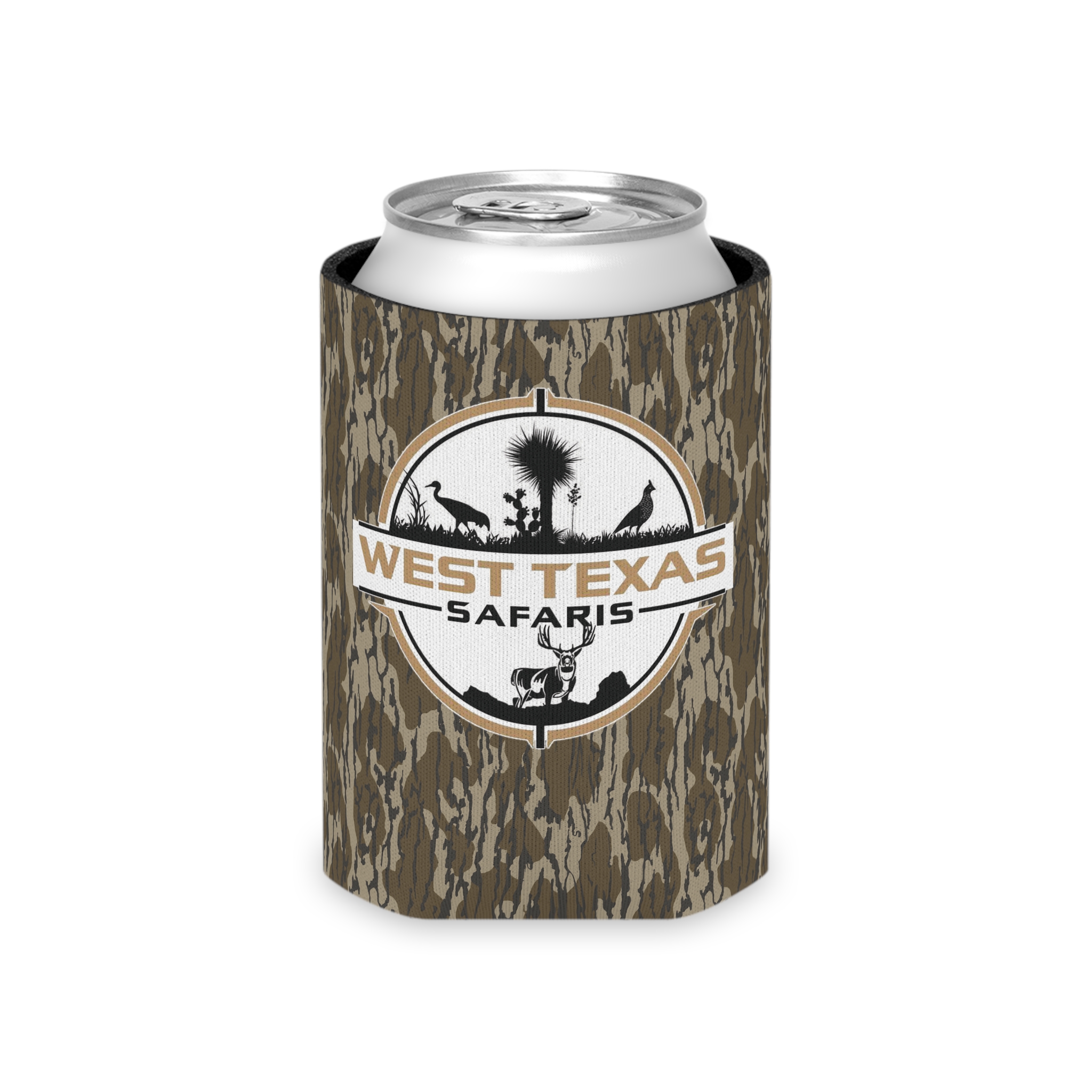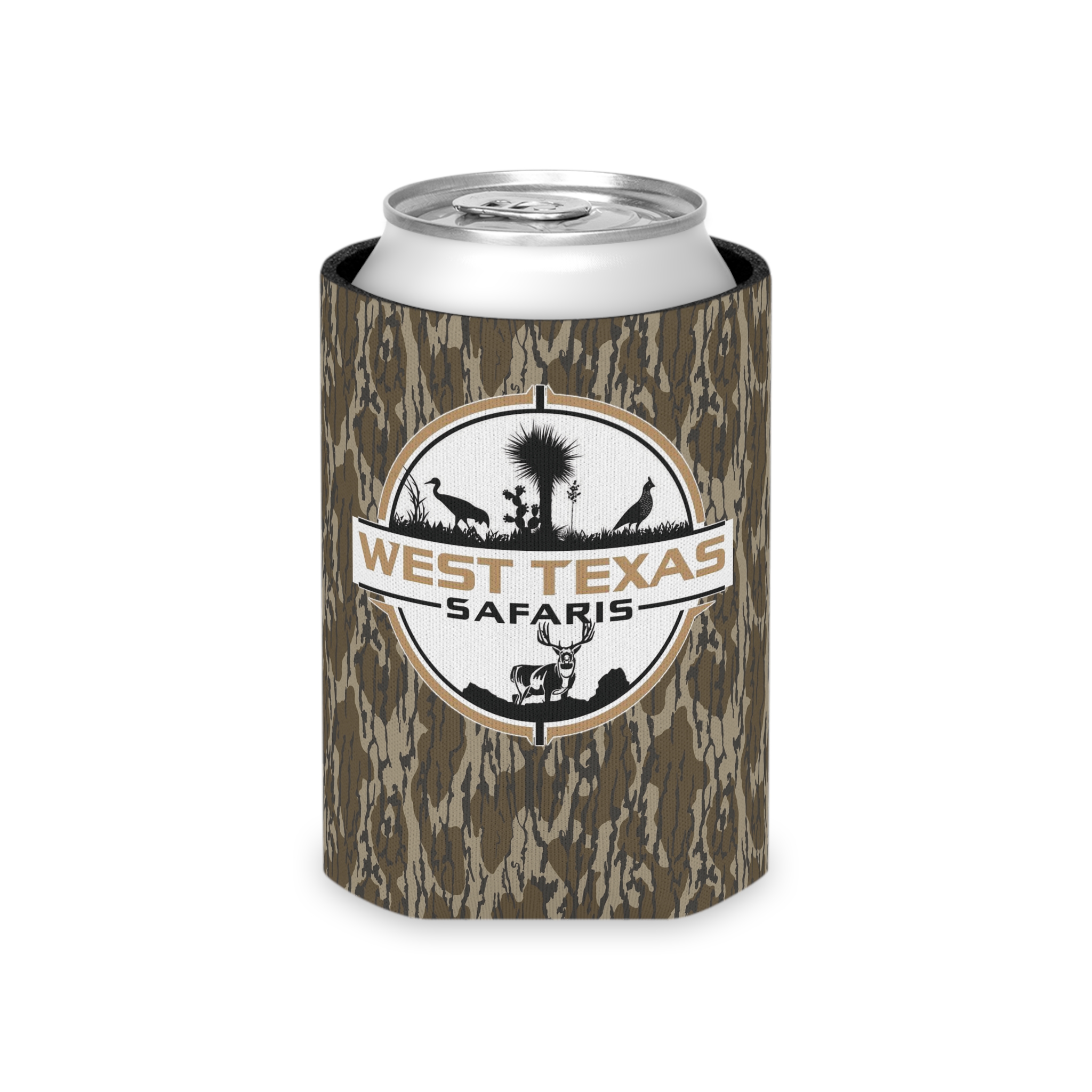 Stay refreshingly cool on your outdoor adventures with the West Texas Safaris Camo Koozie Can Cooler. Featuring authentic Mossy Oak Bottomland camouflage, it blends seamlessly into your surroundings. Designed for durability and insulation, it keeps your beverages cold while showcasing your passion for hunting. Perfect for any outdoor enthusiast!